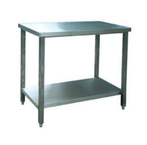 Стол производственный с бортом,  (1500х600х870 мм, столешница и сплошная полка — AISI430, каркас — круг.труба AISI201, 1 борт 50мм, углы столешницы заварены)